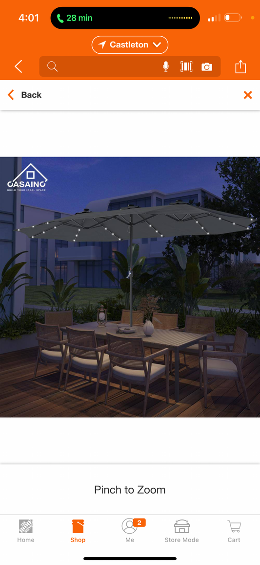 15 ft. Steel Patio Double-Side Market Umbrella with Base and Solar Light with Base in Dark Gray