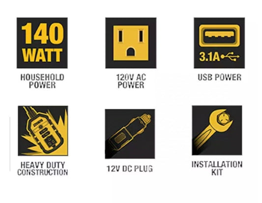 140 Watt Portable Car Power Inverter with Dual USB Ports