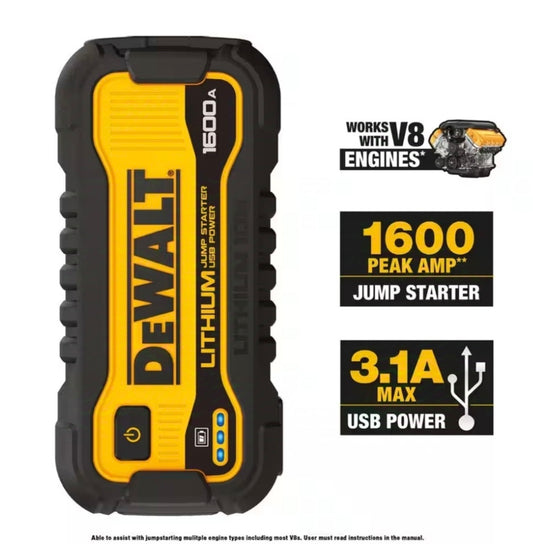 1600 Peak Amp Lithium Jump Starter with USB Power Bank