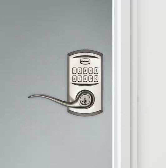 Kwikset 99170-001 SmartCode 917 Keypad Keyless Entry Traditional Residential Electronic Lever Deadbolt Alternative with Tustin Door Handle and SmartKey Security, Satin Nickel, Large