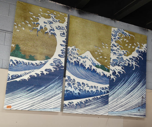 Looife Japanese Painting Canvas Wall Art Decor 3 Piecess 36x48 Inch Katsushika Hokusai Landscape Artwork Reproduction Picture Prints Gallery Wrapped Triptych Room Decoration Ready to Hang