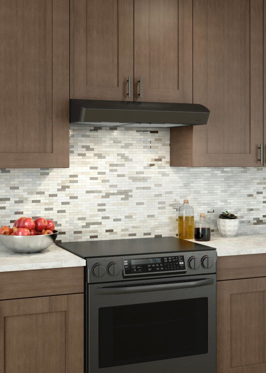 NuTone® Mantra 36-Inch 375 MAX Blower CFM 1.5 Sones Black Stainless Steel Range Hood