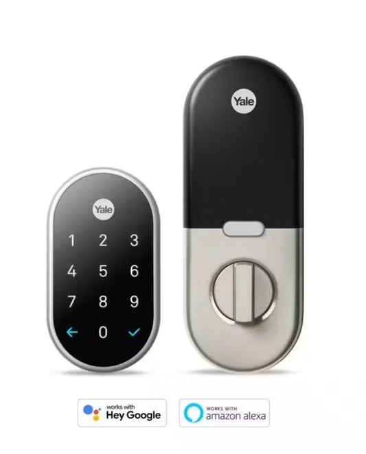 Nest x Yale Lock - Tamper-Proof Smart Wifi Bluetooth Deadbolt Lock with Nest Connect - Satin Nickel
