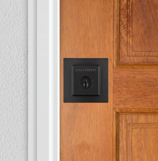 Prestige Spyglass Matte Black Square Single Cylinder Deadbolt Featuring SmartKey Security