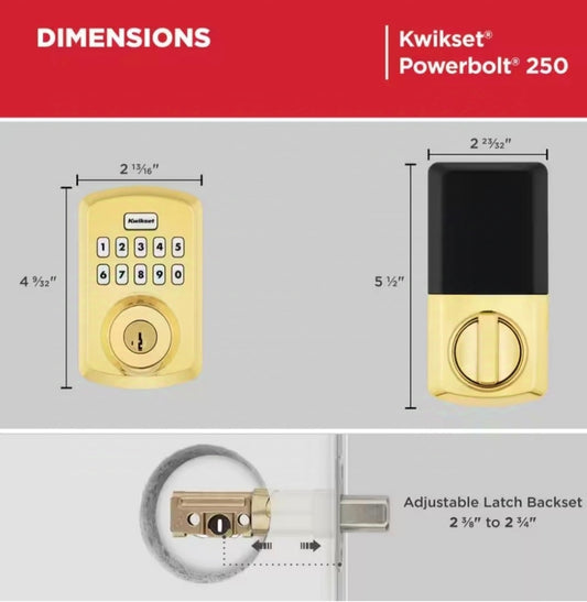 Powerbolt 250 10-Button Keypad Lifetime Polished Brass Transitional Electronic Deadbolt Door Lock