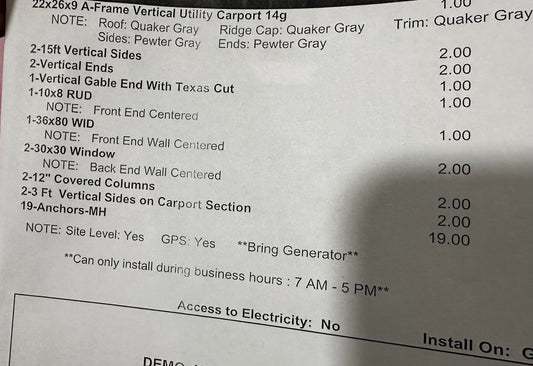 22x31x11 Carport