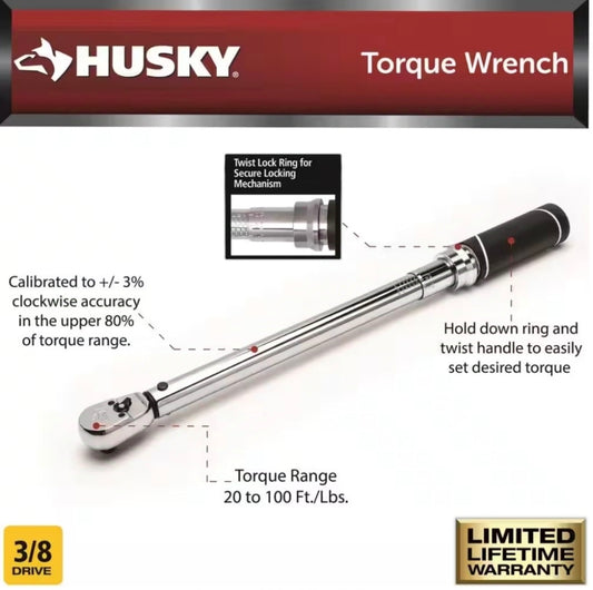 20 ft./lbs. to 100 ft./lbs. 3/8 in. Drive Torque Wrench