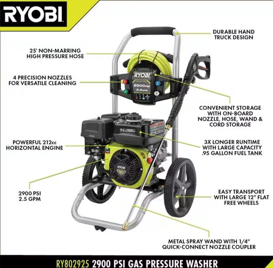 2900 PSI 2.5 GPM Cold Water Gas Pressure Washer with 212cc Engine