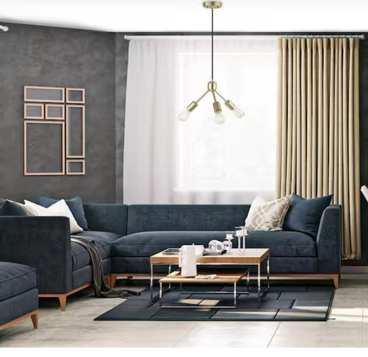 3-Light Gold Chandelier with Matte Black Cloth Cord