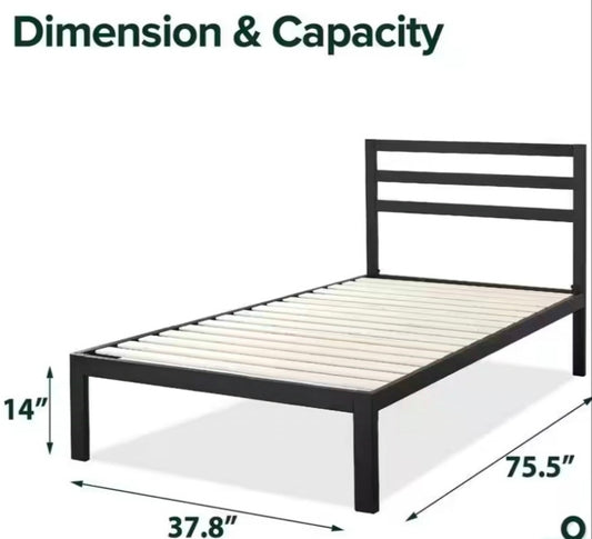 Zinus Mia Twin Black Metal Platform Bed Frame with Headboard