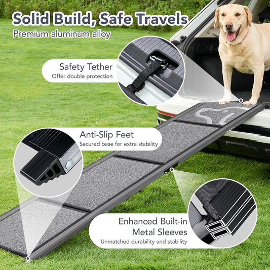 Dog Ramp for Car 71'' X-Long & 17.2" Wide Folding Pet Ramp Dog Ramps for Large Dogs with Non-Slip Rug Surface Portable Dog Car Ramp for SUV Car & Truck, Outdoor Dog Ramp Up to 250 LBS