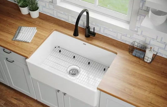 Elkay Fireclay 30 in. Farmhouse/Apron-Front Single Bowl White Fireclay Kitchen Sink Kit w/ Accessories