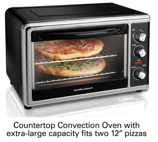 Hamilton Beach Horno de Encimera con Convección y Asador, para Hornear, Asar, Capacidad Extra Grande, Plateado, 31100D