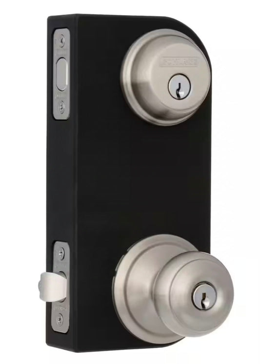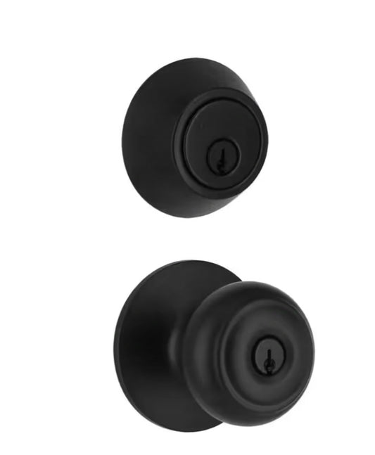 Georgian Satin Nickel Single Cylinder Deadbolt and Keyed Entry Door Knob Combo Pack
