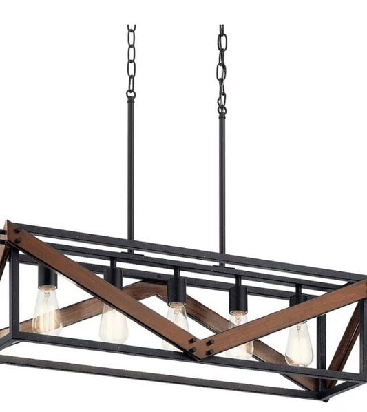 Kichler Barrington 5-Light Distressed Black Farmhouse Cage Chandelier