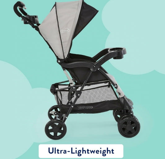 Kolcraft Cloud Plus Lightweight Baby Stroller, Travel Stroller with Large Storage Basket, Multi-Position Reclining Seat, One-Hand Steer, Compact Stroller, Infant and Toddler Stroller - Slate Gray