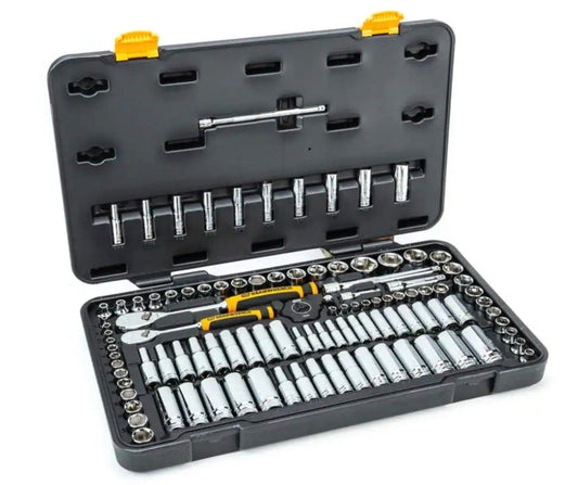GEARWRENCH 1/4 in. and 3/8 in. Drive 6-Point Standard & Deep SAE/Metric 90-Tooth Ratchet and Socket Mechanics Tool Set (106-Piece)