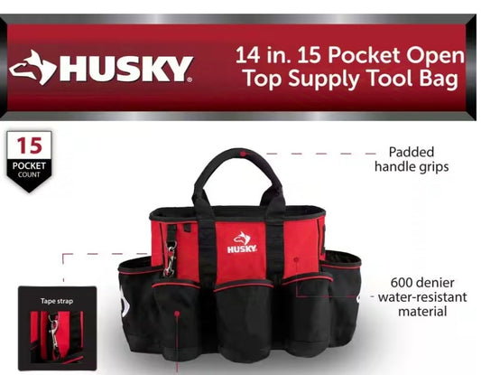 Husky 14 in. 15 Pocket Open Top Supply Tool Bag