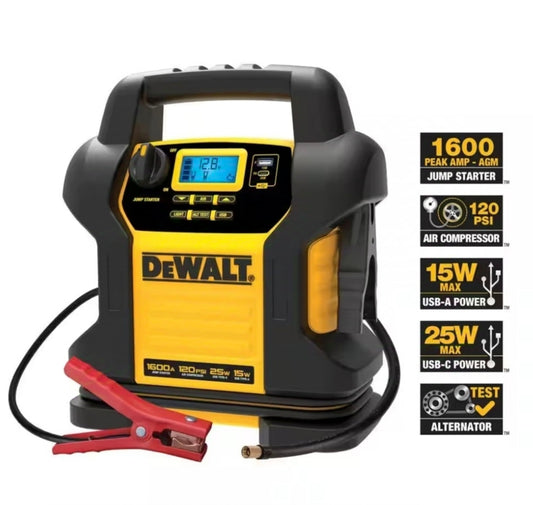 DEWALT DXAEJ14 Digital Portable Power Station Jump Starter 1400 Peak Amp Battery Booster, 120 PSI Digital Air Compressor, 3.1A USB Ports, Battery Clamps