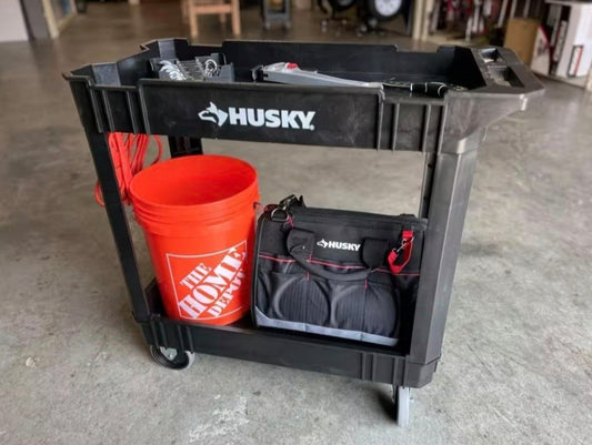 Husky 2-Tier Plastic 4-Wheeled Service Cart in Black with 500 lbs. Capacity