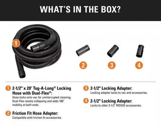 RIDGID 2-1/2 in. x 20 ft. DUAL-FLEX Locking Vacuum Hose Kit Accessory Shop Vac Attachment for RIDGID Wet Dry Vacuums