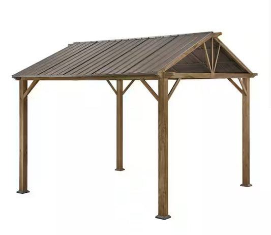 Hampton Bay Providence Place 11 ft. W x 10 ft. D Brown Hard Top Gazebo Only Pick Up