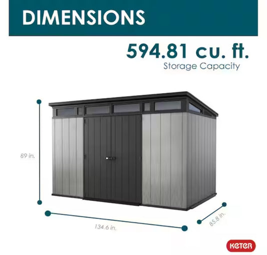 Artisan 11 ft. W x 7 ft. D Large Modern Durable Resin Plastic Storage Shed with Double Doors, Grey (80.2 sq. ft.) Only Pick Up