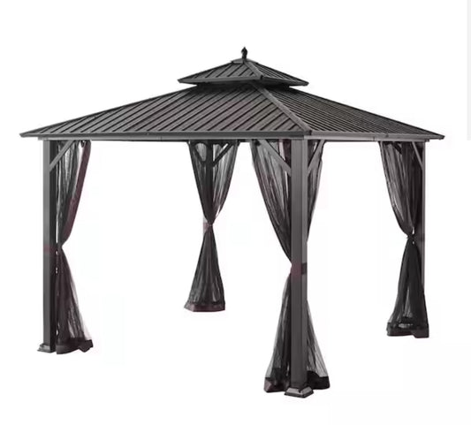 Hampton Bay 10 ft. x 10 ft. Holden Outdoor Patio Black Hard Top Galvanized Steel Gazebo Only Pick Up